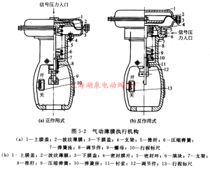 氣動執(zhí)行機構(gòu) (1)薄膜式 氣動薄膜執(zhí)行機構(gòu)是最常見的執(zhí)行機構(gòu),其形式有傳統(tǒng)結(jié)構(gòu)和改進(jìn)結(jié)構(gòu)。 ①傳統(tǒng)型 傳統(tǒng)的氣功薄膜執(zhí)行機構(gòu)如圖...